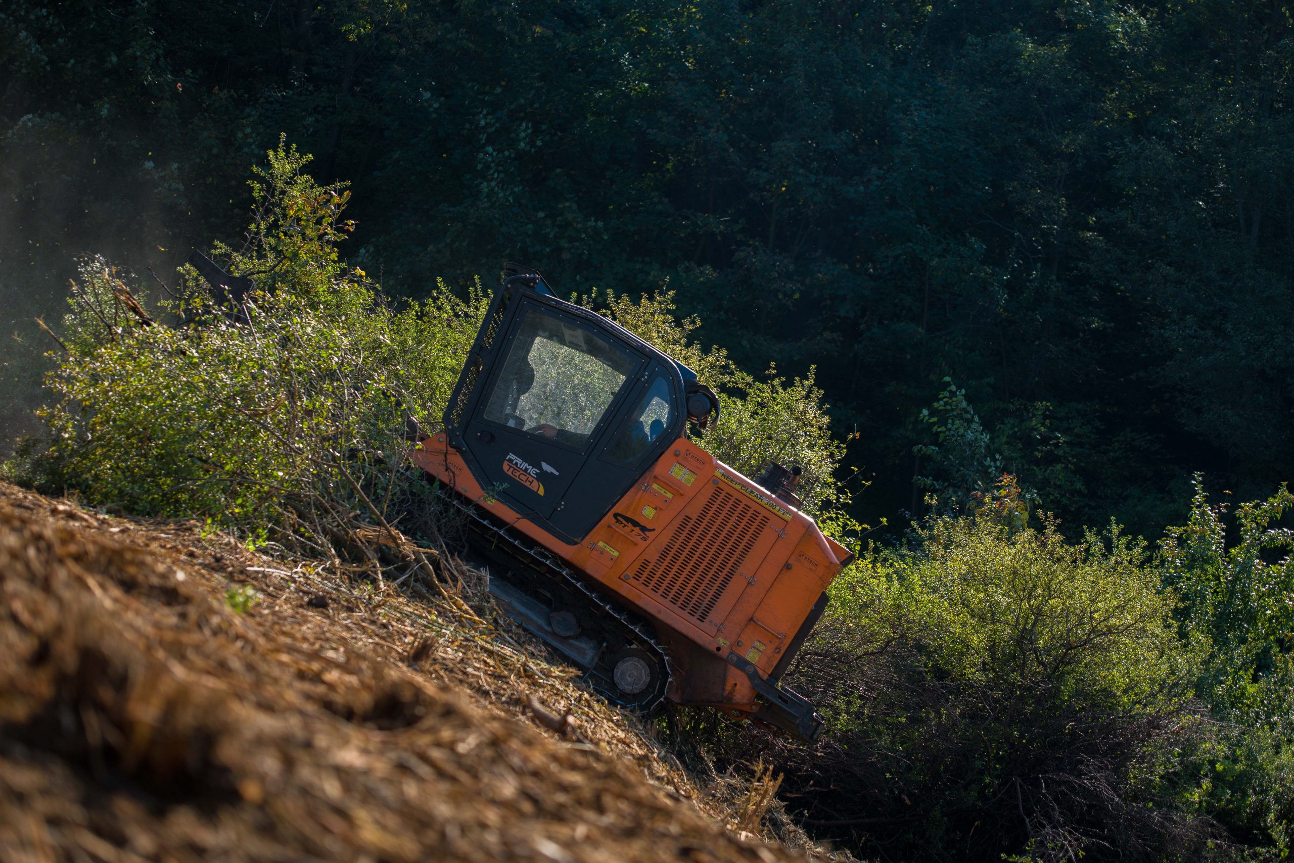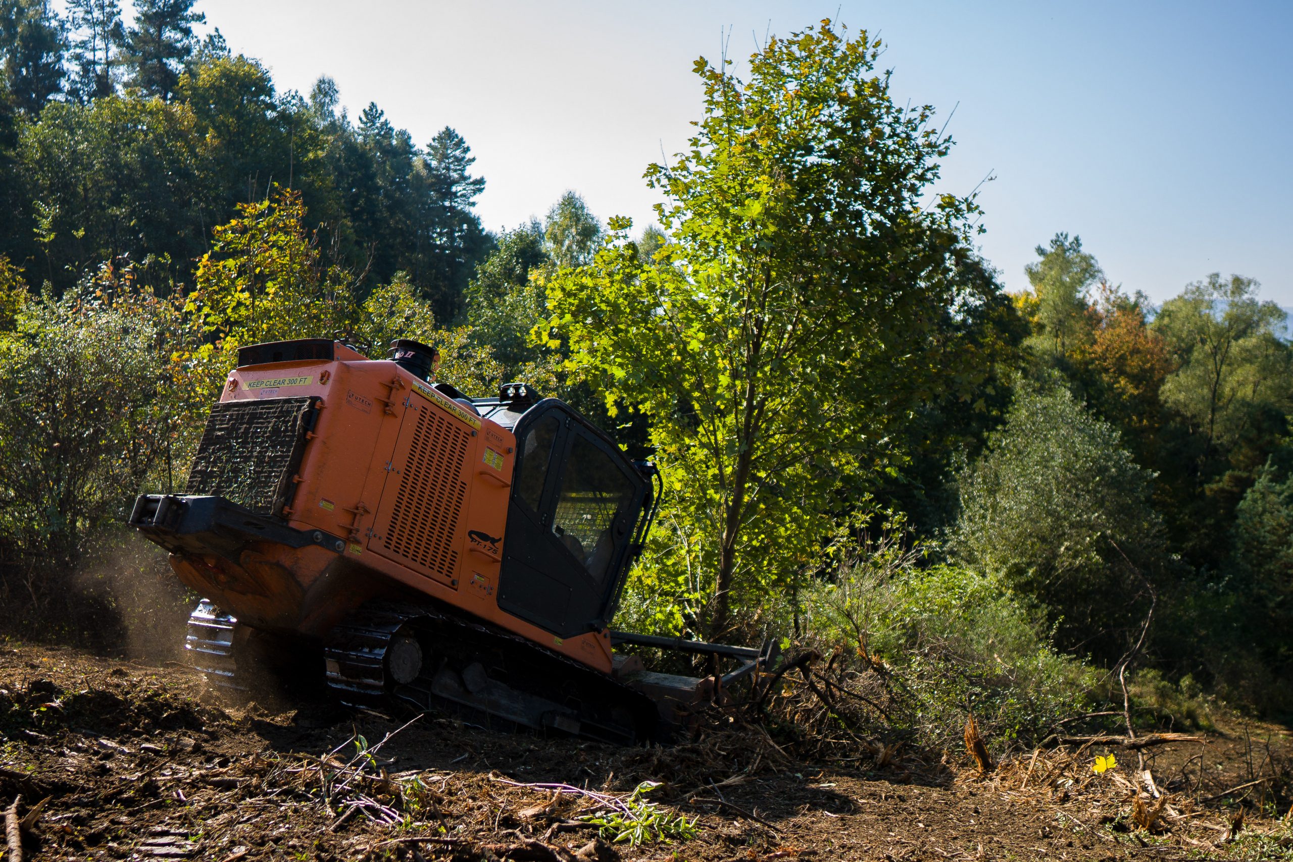 - Mulchen, Zerkleinerung der Reste nach Rodungsarbeiten, Räumung des Geländes von Vegetation,